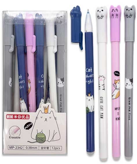 - Ручка гелевая "Пиши-Стирай" INTELLIGENT "Meow" DM-9 синяя,игольч.,0,38мм,асс.