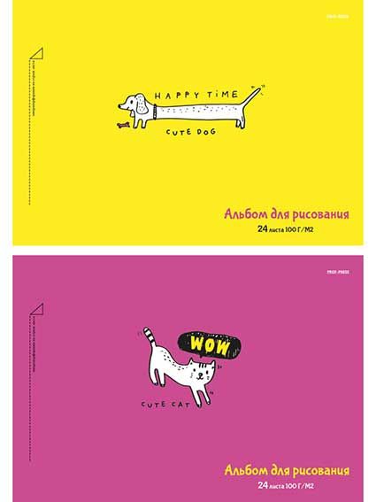 - Альбом для рис.24л. Проф-Пресс спираль "Рисунки домашних животных" 24-3759 лён,асс.