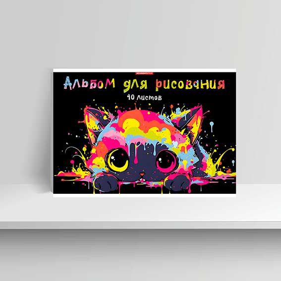 - Альбом для рис.40л. КанцБиз "Кот в красках" 15362 на скобе,вд-лак