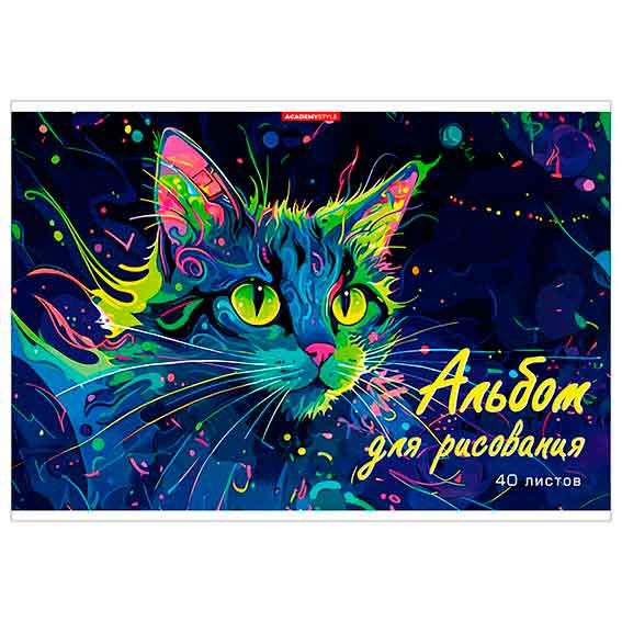 - Альбом для рис.40л. КанцБиз "Зеленоглазый кот" 14451 на скобе,выбр.уф,двойн.конгрев