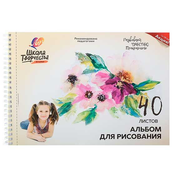 - Альбом для рис.40л. ЛУЧ Школа творчества спираль "Цветы" 30С 1785-08 с перфорац.