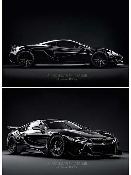 - Альбом для рис.48л. Проф-Пресс "Чёрные автомобили" 48-3920 на скобе,выб.лак,мат.лам.,асс.