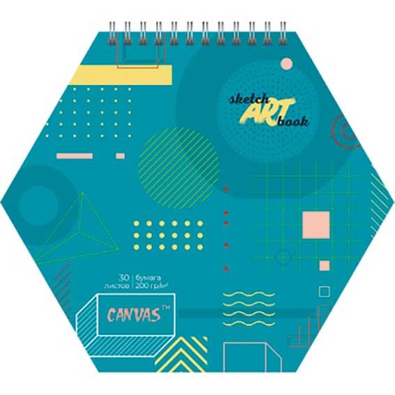 - Скетчбук шестиугольник 30л. АТ спираль "Геометрия" 210007 аквар.бум. 200г/м2,мат.лам.,выб.уф-лак