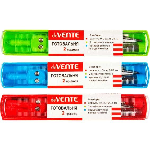 - Готовальня deVENTE (2предм.) 5093623 с линейкой,3грифеля,цв.асс.,в пластик.футляре