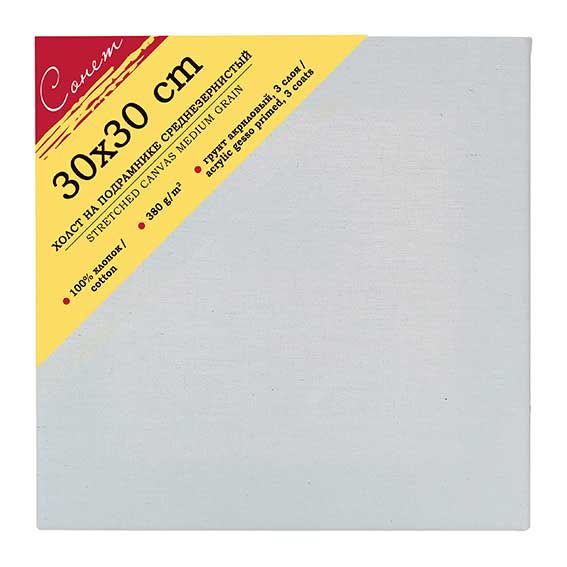 - Холст на подрамнике ЗХК "Сонет" 30*30см,100%хлопок,380г/м2,сред.зерно E5305-B-30x30