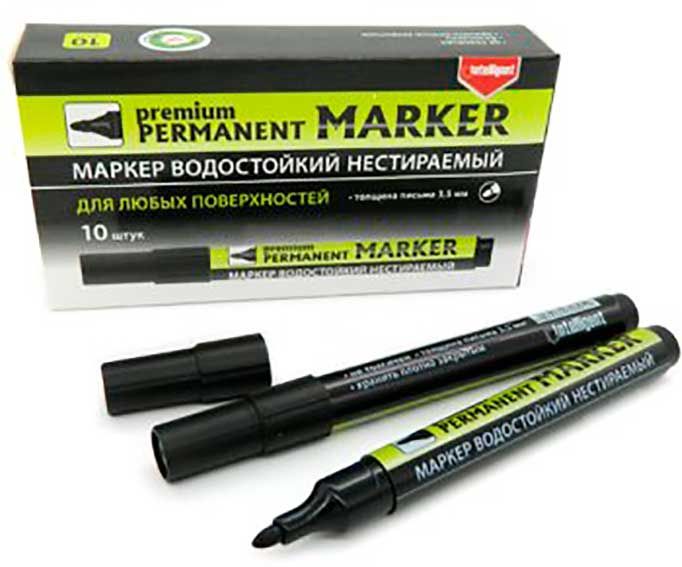 - Маркер перм. INTELLIGENT CY-10 чёрный,пулев.,2-3,5мм
