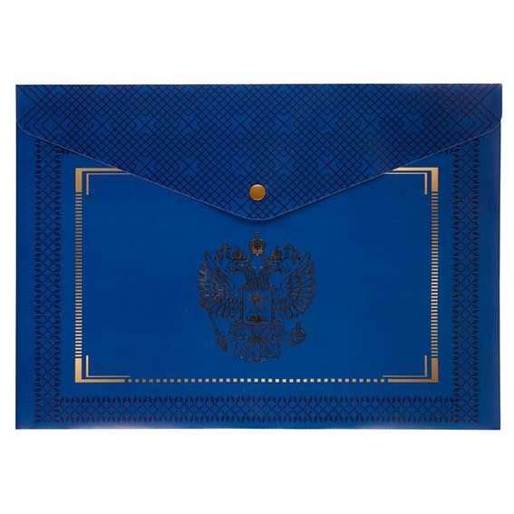 - Папка-конверт на кнопке А4 КЛЕРК "Символика" 231766 0,18мм,непрозр.синяя с рис.