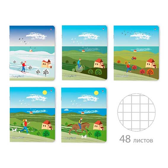 - Тетрадь 48л. (клетка) АЛЬТ "Времена года" 7-48-618 мат.лам.soft touch,фольга серебро,асс.