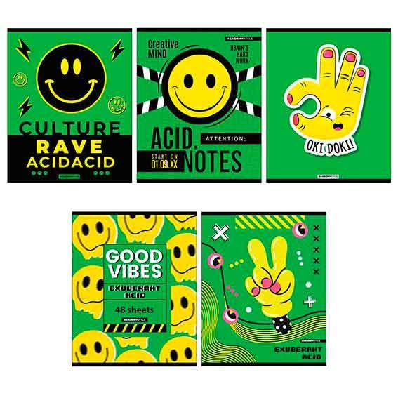 - Тетрадь 48л. (клетка) КанцБиз "Кислотные смайлы" 11960/5 флюор.