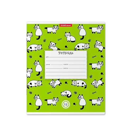 - Тетрадь 12л. (клетка) EK "Cats зелёный" 46530