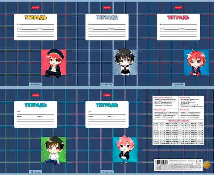 - Тетрадь 12л. (клетка) ХАТ "Мальчики аниме" скругл.углы,асс.