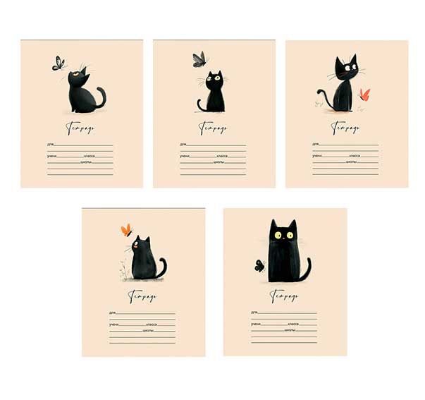 - Тетрадь 12л. (клетка) ПЗБФ Премиум "Чёрный кот" 011375 мат.лам.,эмбоссинг