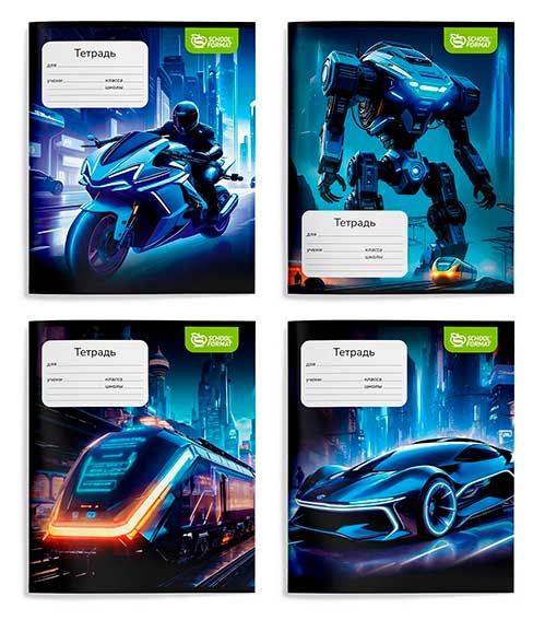 - Тетрадь 12л. (клетка) SchoolФормат "Техника будущего" ТШК12-ТБ мел.карт.,вд-лак