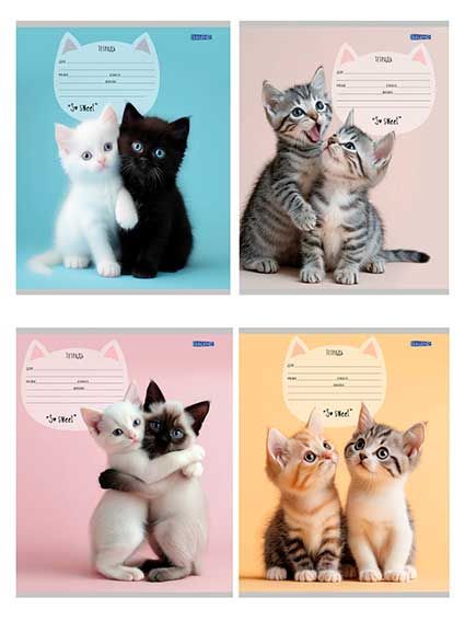 - Тетрадь 12л. (кос.лин.) Проф-Пресс "Милые парочки котиков" 12-4159 цв.мел.обл.,асс.