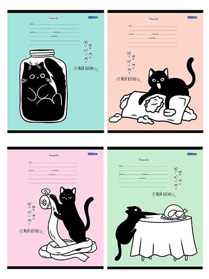 - Тетрадь 12л. (кос.лин.) Проф-Пресс "Озорной чёрный кот" 12-4158 цв.мел.обл.,асс.