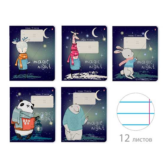 - Тетрадь 12л. (линейка) АЛЬТ "Magic Night" 7-12-796/2 обл.мел.карт.,серебр.фольга,асс.5в.