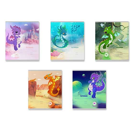 - Тетрадь 12л. (линейка) EK "Дракончики" 60541 выб.уф-лак,глитт.,асс.