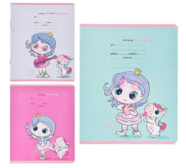 - Тетрадь 12л. (линейка) ПЗБФ "Девочки принцессы" 015755 выб.уф,асс.