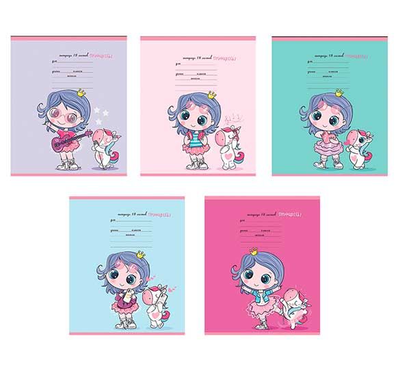 - Тетрадь 18л. (линейка) ПЗБФ "Девочки принцессы" 015731 уф выб.